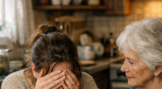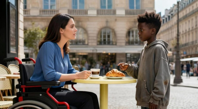 “Can I sit here?” The biker froze, his coffee suspended halfway to his mouth.For nearly four years, no one had