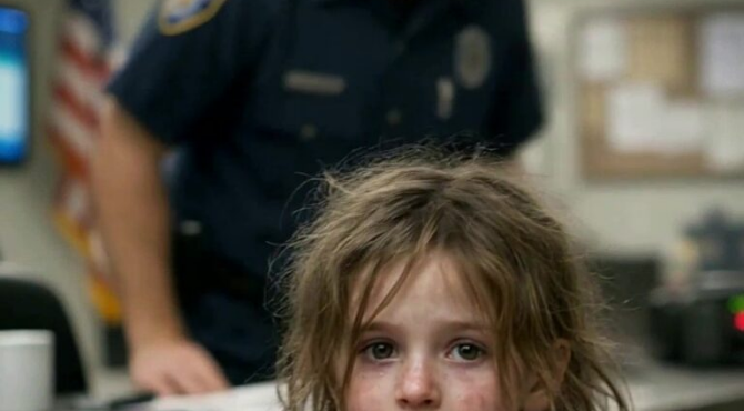 The little girl stood just inside the doorway of the police station, her shoes still muddy, her hair tangled as