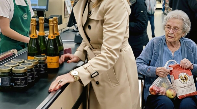 The grocery store was unusually quiet for a Saturday afternoon. Emma Carter stood in line at register four, her six-week-old