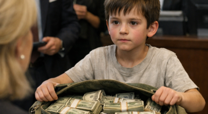 They laughed when the boy walked into the bank with an old canvas bag clutched to his chest.It was not