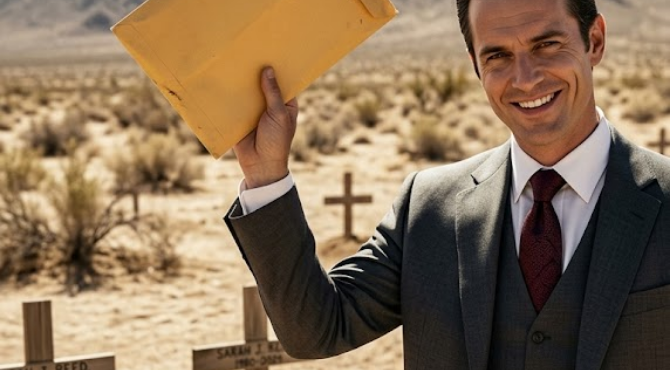 Catherine slammed a manila envelope onto the white frosting of my retirement cake just as my son and daughter set