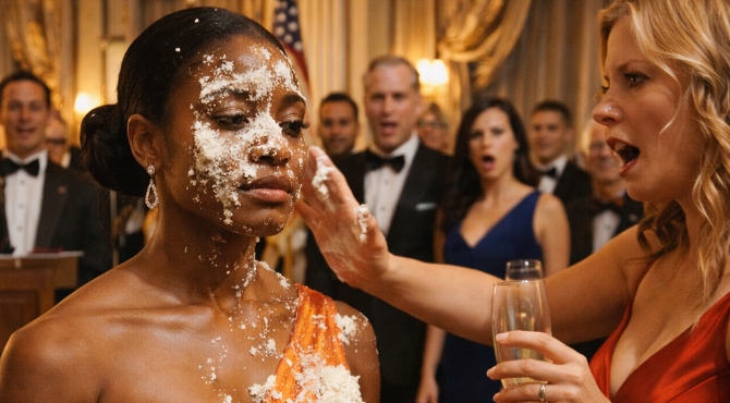 The icing was ice-cold against my cheek, slowly stiffening under the relentless blaze of the chandeliers. I stood perfectly still